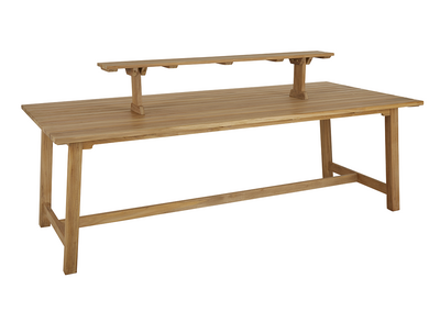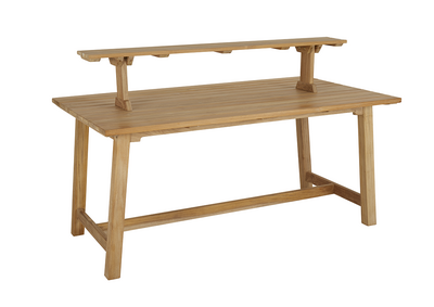 En smart hylle til å plassere oppå Keros spisebord fra Brafab i heltre teak. Gir deg ekstra plass til servering og eksponering til de store utemiddagene.