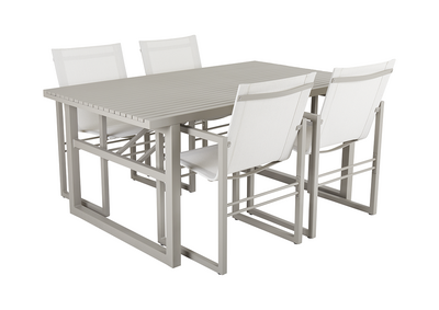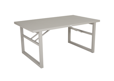 Vevi matbord fra Brafab er et stilrent og funksjonelt spisebord med tydelig inspirasjon fra skandinavisk formspråk. Den ribbede bordplaten og de rette, grafiske linjene gir et lett og moderne uttrykk, samtidig som designet er tidløst. Bordet er laget i pulverlakkert aluminium, som gjør det både vedlikeholdsfritt og robust – ideelt for norske utendørsforhold.