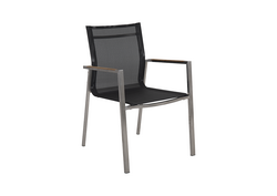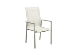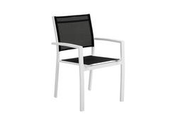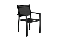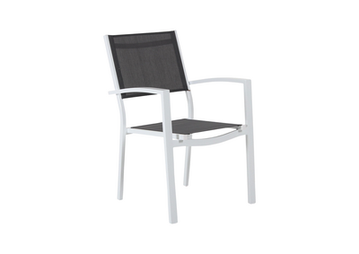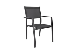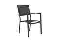 Med behagelige armlener og textilene i sete og rygg, garanterer denne stolen både komfort og stil. Textilene er spesielt valgt for sin holdbarhet og værbestandighet, noe som sørger for langvarig bruk.