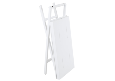 Vero er et sammenleggbart bord som er pulverlakkert. Platen fungerer som et avtagbart serveringsbrett som kan brukes på begge sider. Vedlikehold: Vaskes med mildt såpevann.