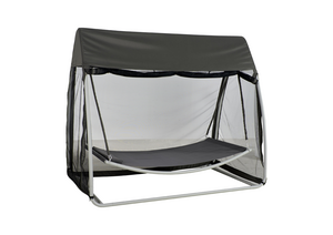 Hammocken leveres med stativ – ingen behov for kroker eller bæring. Sett den opp, heng i putene og nyt! Værbeskyttelse er enkelt med overbygg, og modellen tåler både sol og lett regn (påsatt skjerm).