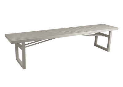 Vevi benk kombinerer moderne, nordisk design med praktisk funksjonalitet. Laget av pulverlakkert aluminium, er den både lett og værbestandig, noe som gjør den ideell for utendørs bruk. Benken har mål på 200 cm i lengde, 41 cm i dybde og en sittehøyde på 45 cm, og passer perfekt til de fleste spisebord for utendørs bruk.