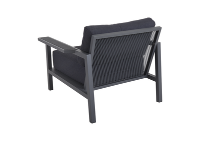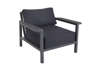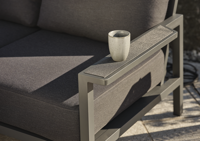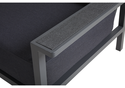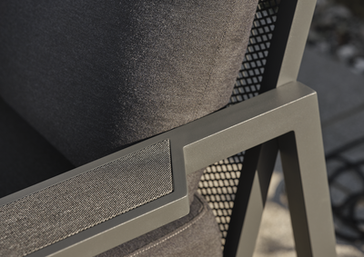 - Solide aluminiumsrammer med brede armlener og tekstildetaljer