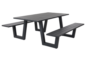 Møbler i aluminium ruster ikke og er praktisk talt vedlikeholdsfrie. Materialet veier lite, samtidig som stabiliteten i møbelet blir veldig god.