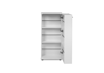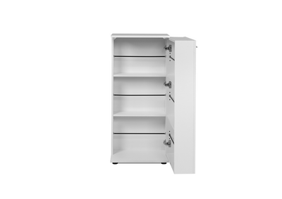 • B:74 cm, D:34 cm, H:182 cm – plass til ca. 25 par sko med to dører.