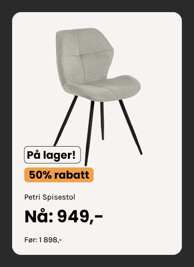 Benytt sjansen på opptil 60% til stuen, spiseplassen og soverommet. Prisene blir ikke bedre!