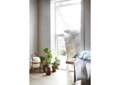 Dynen er fylt med 90% ekstra ren hvit europeisk dun fra moskusand og, 10% små hvite fjær fra moskusand. Trekket er vevet i ekstra fin og myk bomullscambric av 100% økologisk bomull som er så tett at dun ikke trenger igjennom. Det betyr at du får en vinterdyne som kjennes svært myk, faller godt rundt kroppen og som holder deg god og varm hele natten. Gjør sengen komplett med et mykt sengesett i tillegg.