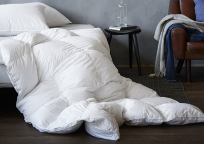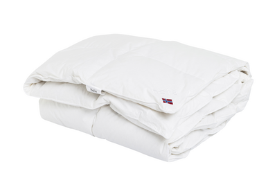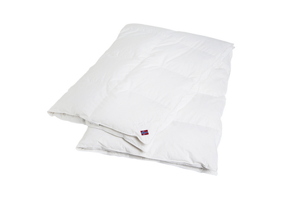 Dynen er fylt med 90% ekstra ren hvit europeisk dun fra moskusand og, 10% små hvite fjær fra moskusand. Trekket er vevet i ekstra fin og myk bomullscambric av 100% økologisk bomull som er så tett at dun ikke trenger igjennom. Det betyr at du får en dyne som kjennes svært myk, faller godt rundt kroppen og som holder deg varm.
