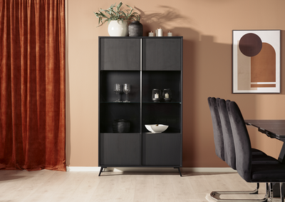 Velg mellom to praktiske utførelser: én med 2 dører med glass og en dekorativ glasshylle, eller én med 4 tette dører for mer skjult oppbevaring. Med totalt 4 rom gir City skap god plass til å organisere alt fra servise til bøker og pyntegjenstander.