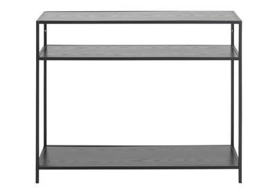 Et konsollbord i vår moderne og industrielle serie Seaford. Konsollbordet har sort rustikk metall og plater i sort ask melamin. Totalt 3stk hyller gir god oppbevaringsplass, samtidig som det er dekorativt. Seaford konsollbord har flere bruksområder og den praktiske størrelsen gjør at den passer godt inn overalt.
