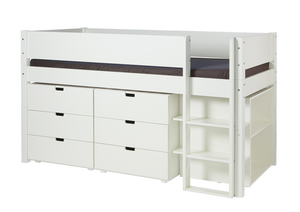 Vi vet hvor viktig ryddighet er i barnerom – derfor tilbyr flere av våre modeller løsninger med skuffer under sengen, uttrekkbare enheter eller integrerte garderobedeler. Praktiske detaljer som disse gjør det enklere å holde orden og gir mer funksjon i én møbelløsning.
