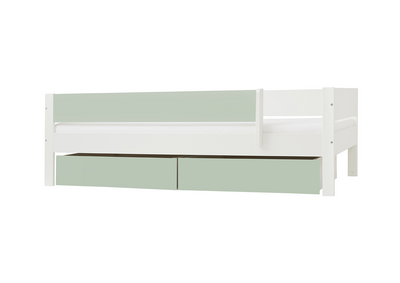 Huxie Barneseng kommer i to størrelser: juniorseng på 70x160 cm og standardseng på 90x200 cm. Dette gir deg muligheten til å velge den størrelsen som passer best for ditt barn og rommet. I tillegg tilbyr Huxie-serien praktiske sengeskuffer som gir ekstra oppbevaringsplass under sengen. Dette er en ideell løsning for å holde barnets rom ryddig og organisert.