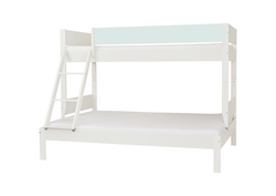 Sengen er utstyrt med en stige som kan monteres på både høyre og venstre side, noe som gir fleksibilitet i plasseringen. Den øvre sengen har sengekanter rundt hele veien med en liten åpning ved stigen, noe som sikrer at barnet sover trygt "innrammet" uten å falle ut, samtidig som det har enkel tilgang til stigen. For ekstra sikkerhet, kan du også kjøpe til en sengehest til den nedre sengen.