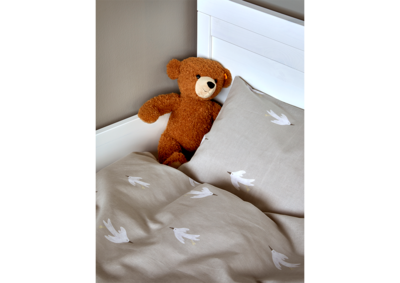 Fina sengesett er laget av ekstra fin bomull, kjent for sin mykhet og holdbarhet – ideelt for barnas sensitive hud. Stoffet er behandlet med Easy Care, som gjør det mer motstandsdyktig mot krøller og enklere å vedlikeholde over tid. Sengesettet har et søtt design med små fugler, som skaper en rolig og hyggelig stemning på barnerommet. Glidelås i bunnen av dynetrekket gjør det lett å skifte sengetøy, og det tåler vask på høy temperatur for god hygiene. Med OEKO-TEX og Svanemerket sertifiseringer kan du være trygg på at barnet sover i et produkt uten skadelige kjemikalier.