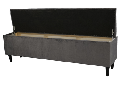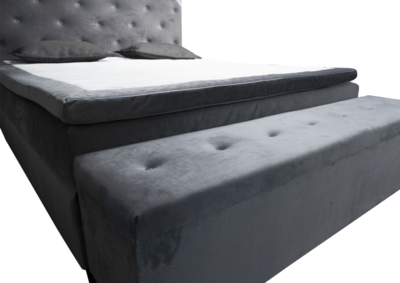 Rave Luxor sengepall kombinerer praktisk funksjon med elegant design. Den er trukket i et mykt og slitesterkt velourstoff som gir et sofistikert uttrykk og harmonerer perfekt med Luxor kontinentalseng. Pallen gir både ekstra sitteplass og skjult oppbevaring, ideell for sengetøy, pledd eller andre tekstiler du vil ha lett tilgjengelig.