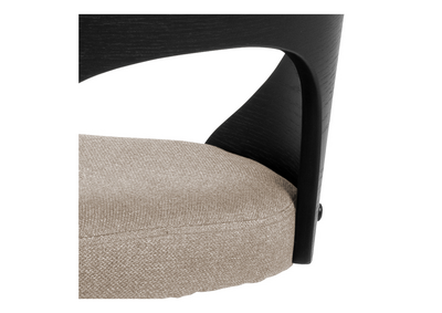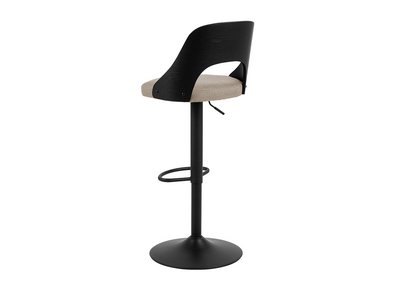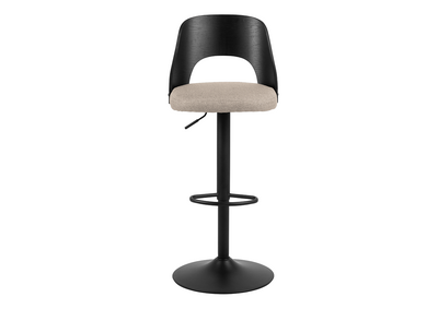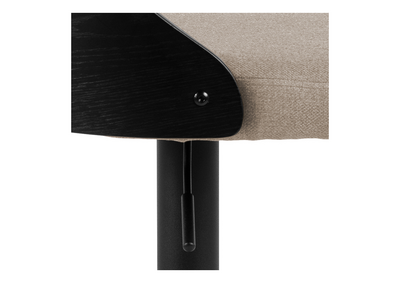 Lucy barstol kombinerer moderne design med praktisk funksjonalitet. Med en elegant rygg i eikfinér og sort metallunderstell med trompetfot, passer den perfekt til både kjøkkenøy og barløsning. Setet er trukket i slitesterkt stoff i mørk grå eller beige nyanse, og gir god sittekomfort.