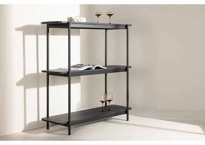 Heim Hylle fra Venture Design er en kombinasjon av estetikk og funksjonalitet. Den slanke stålrammen i svart eller whitewash-finish sammen med hyller i MDF gir et moderne uttrykk som passer i både små og store hjem. Velg mellom modeller med tre eller fem hyller, og skap en oppbevaringsløsning som dekker dine behov.