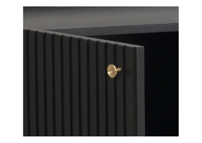 Halifax er utstyrt med skjulte hull slik at du selv kan velge om du ønsker å montere de medfølgende knottene i børstet, gullfarget metall. Dette gir deg frihet til å tilpasse uttrykket etter stil og smak. De sorte metallbena gir et lett og balansert løft til det visuelle uttrykket, samtidig som de sikrer god stabilitet.