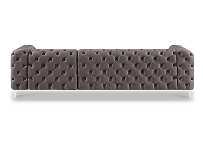 Med sine karakteristiske dype knappesømmer, tilbyr Bella Sofa et blikkfang av en design. Denne moderne tolkningen av chesterfield-stilen er både gedigen og sofistikert, en garanti for å heve ethvert roms estetikk.