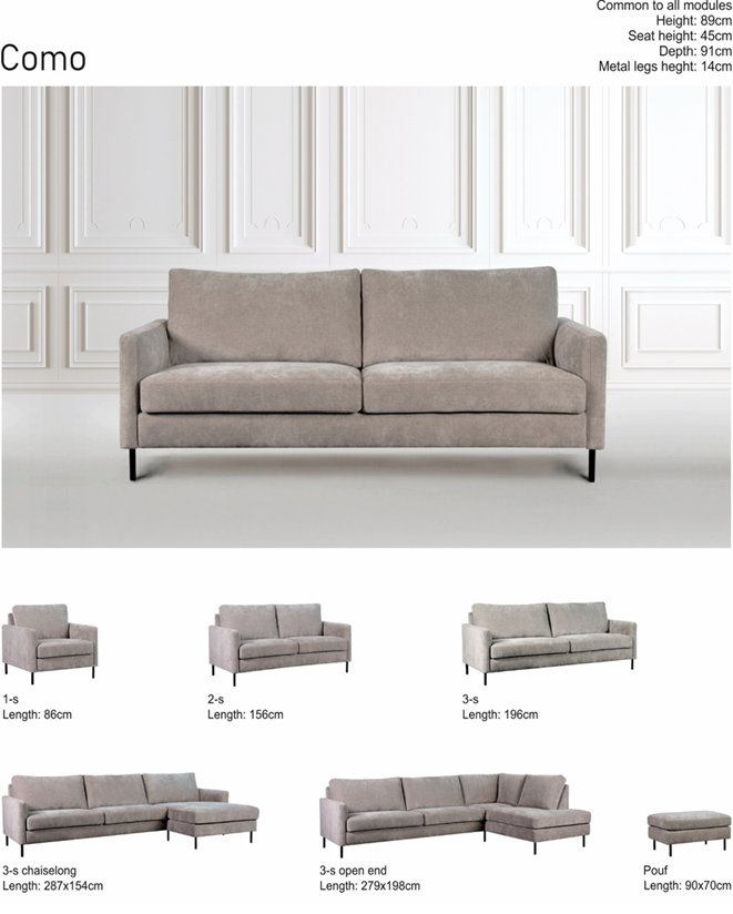 Como Sofa kan bestilles i et stort utvalg av stoffer og farger, noe som gjør det enkelt å tilpasse den til din personlige stil og hjemmets interiør. Enten du foretrekker en klassisk nøytral tone eller en dristig farge, vil du finne det perfekte tekstilet i vår rikholdige tekstilkolleksjon. For ekstra fleksibilitet kan du også sende inn ditt eget tekstil.