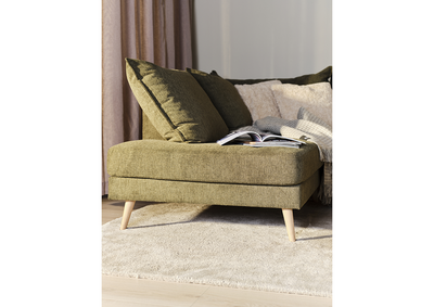 Justin er trukket i slitesterkt Brego stoff i grønn farge som bevarer sin skjønnhet over tid. Ved jevnlig vedlikehold vil denne hjørnesofaen beholde sitt elegante utseende og gode stand. Med Justin kan du slappe av og nyte komforten uten å bekymre deg for stoffets holdbarhet.