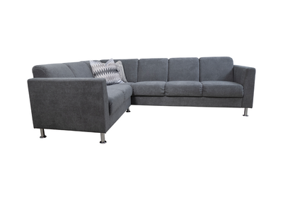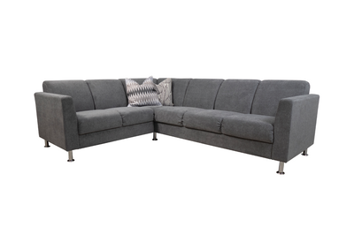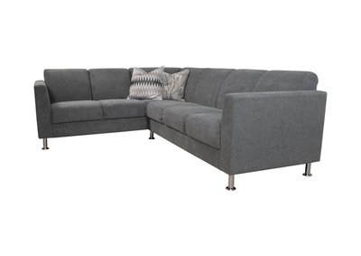 Denne sofamodellen kan og bestilles som 3-seter og 2-seter, og du kan velge i et stort utvalg stoff og farger. Velg også treben eller metallben. Hjørnesofaen kan speilvendes.