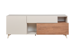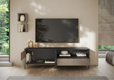 Everest TV-benken er multifunksjonell og passer ikke bare for stue og hjemmekino, men kan også brukes på soverommet eller i oppholdsrom for å holde elektronikk og tilbehør organisert. Med sitt moderne design og nøytrale farger, kan denne TV-benken enkelt integreres i ethvert hjem og oppgradere rommets estetikk.