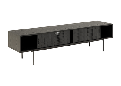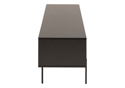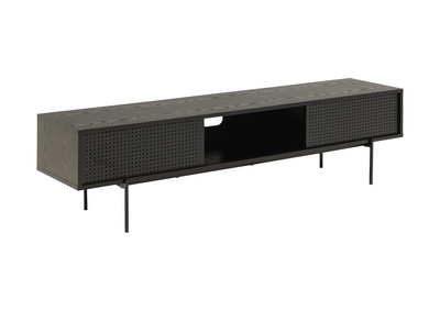 Angus TV-benk er et moderne møbel som løfter helhetsinntrykket av stuen. Den 40 cm dype platen i sort ask finér hviler på et pulverlakkert, sort metallunderstell og gir en visuelt lett, men solid base for TV-en din. Med to breddevalg – 140 cm for mindre rom eller 180 cm for større veggflater – tilpasser benken seg raskt ulike planløsninger uten å oppta mer enn 45 cm i høyden.