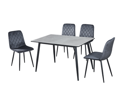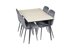 Bordplaten på Bari Spisebord har en detaljrik, printet grå marmor- eller villeik-imitasjon, som fremhever bordets luksuriøse og elegante karakter. Hver enkelt bordplate skilter med naturlige årer og nyanser, slik at du kan være sikker på at ditt bord er unikt. Den polerte finishen sørger for en glansfull og glatt overflate, kombinert med letthet i rengjøring og en sofistikert stil.