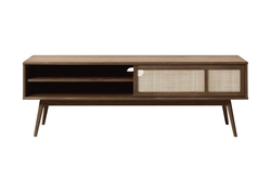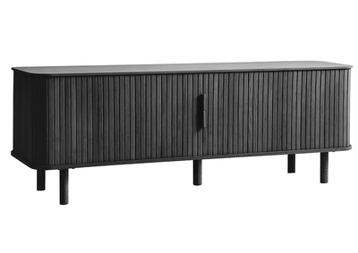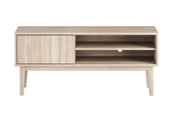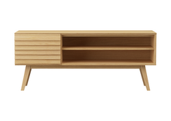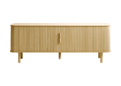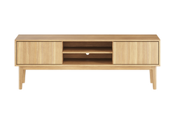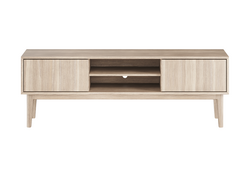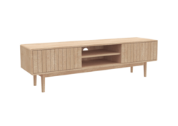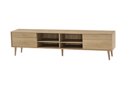 Konstruert av høykvalitets MDF med eikefinér og innvendige detaljer i sort stoff, tilbyr Cavo TV-benk en slitesterk og holdbar løsning for ditt hjem. Solid treben gir et elegant løft og bidrar til benkens stabilitet.