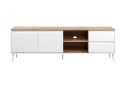 Cavo TV-benk, tilgjengelig i fargealternativene sort, røyket, natur, espresso og hvitoljet eik, tilbyr en minimalistisk stil som enkelt smelter sammen med enhver innredning. Dens rene linjer og lav profil gir et moderne uttrykk som komplementerer både din TV og ditt underholdningssystem.