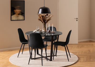 Celia Spisestol er designet for å komplementere nesten ethvert bord, takket være sitt allsidige utseende. Enten du foretrekker svart, mørk eller lys grå, eller beige stoff, tilbyr Celia en farge som matcher din innredning. Denne stolen innbyr til lange, komfortable måltider med familie og venner, og tilfører et snev av eleganse til dine sammenkomster.