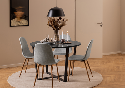 Celia Spisestol er designet for å komplementere nesten ethvert bord, takket være sitt allsidige utseende. Enten du foretrekker svart, mørk eller lys grå, eller beige stoff, tilbyr Celia en farge som matcher din innredning. Denne stolen innbyr til lange, komfortable måltider med familie og venner, og tilfører et snev av eleganse til dine sammenkomster.