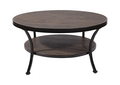 Manila sofabord kombinerer industrielt design med funksjonelle detaljer. Bordet har en brun antikkmønstret overflate i folie og et solid sort metallunderstell. Den ovale eller runde bordplaten uten skarpe kanter gjør det trygt og brukervennlig i hjem med barn.