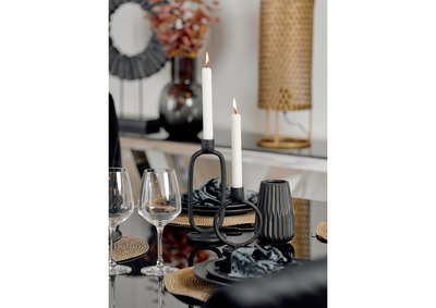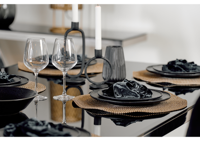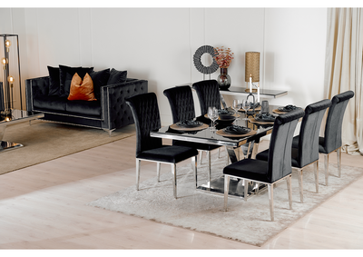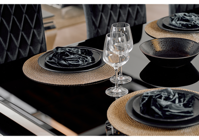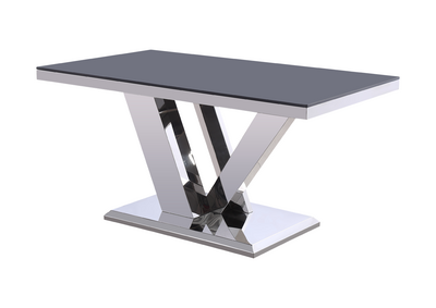 Messina Spisebord skiller seg ut med sitt sort glass og sølvfargede understell. Den v-formede sokkelen gir bordet et luksuriøst preg som vil imponere gjestene dine. Uansett om du har en moderne eller klassisk innredning, vil Messina Spisebord være en vakker tillegg til ditt hjem.