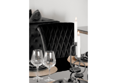 Messina spisestol er designet med fokus på både estetikk og funksjonalitet. Den høye ryggen og den gode sittehøyden sørger for at du kan sitte komfortabelt gjennom hele måltidet. Benene i rustfritt stål gir stolen stabilitet og holdbarhet, mens det sorte velour-stoffet er slitesterkt og lett å rengjøre. Denne kombinasjonen av materialer sikrer at Messina spisestol ikke bare ser flott ut, men også tåler daglig bruk.