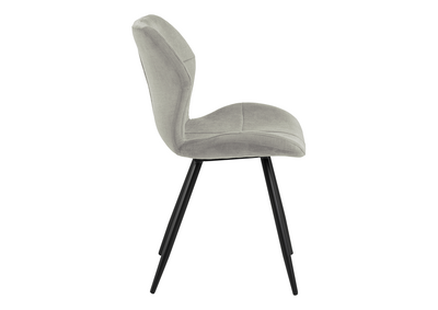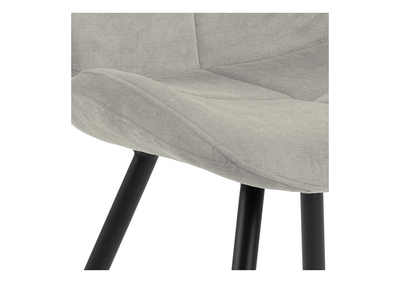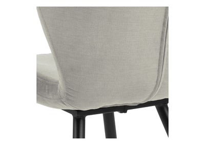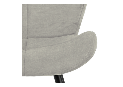 Stolens robuste ben i sort metall tilbyr en stilig kontrast til det myke stoffet, noe som sikrer at stolen står stødig og stabilt i mange år.