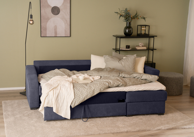 Utstyrt med en enkel, men solid mekanisme som med få grep lar deg konvertere sofaen til en seng for to personer. Dette gjør den ideell for gjesterom, hjemmekontor eller stuen. Sofaen har også en romslig oppbevaringsplass i divan-delen med plass til overmadrass eller det du trenger av dyner og puter.