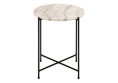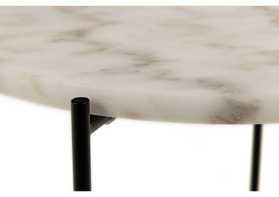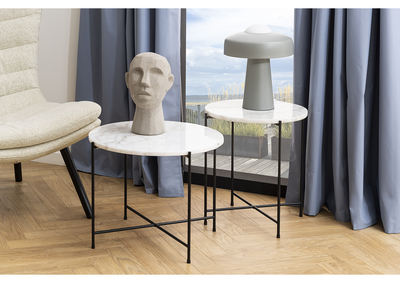 Basen til Avila sidebord er laget av matt svart grov pulverlakkert metall, som gir en sterk og solid struktur. Kombinasjonen av marmor og metall gir et moderne og elegant utseende som vil passe godt inn i et moderne hjem.