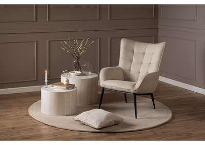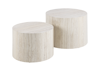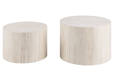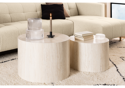 Forvandle stuen din med Dice Sidebord, et stilfullt sett med runde bord som kombinerer moderne design med en sofistikert marmorlook. Dice Sidebord kommer i et sett på to størrelser, perfekt for å plassere foran sofaen eller som et sidebord ved lenestolen. Den strømlinjeformede silhuetten og marmordekoret gir et luksuriøst preg til ethvert interiør, og skaper en visuell interesse som fanger oppmerksomheten i rommet.