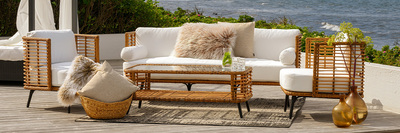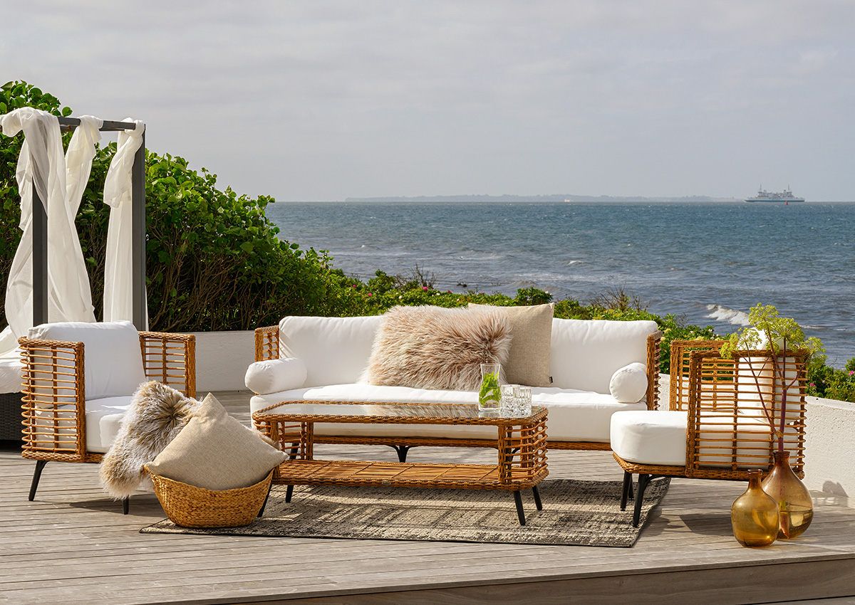 Den luftige vevde kunstrottingen i et stilig mønster gir Covelo-serien en herlig blanding av moderne design og naturlig myk eleganse. De høye rammene i naturfarget kunstrotting gir et stramt uttrykk og passer perfekt inn på uteplassen, hagen eller åpne terrasser.