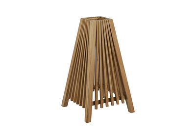 Julita Lampeskjerm lar lys filtrere gjennom de tverrgående teakribbene, og skaper et lekent og inviterende lysspill som kan transformere ethvert uterom til en stemningsfull oase.