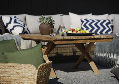 Julita Sofabord er laget for å tåle vær og vind, takket være kvalitetsmaterialet teak. Lett vedlikehold med klut og mildt såpevann anbefales for å bevare bordets skjønnhet over tid.