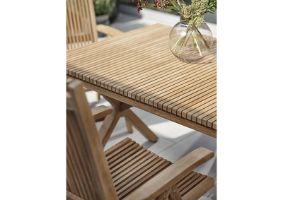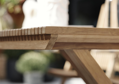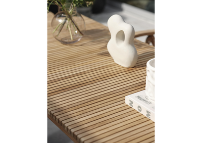 Takket være teakets naturlige egenskaper, krever Julita Spisebord minimalt med vedlikehold.