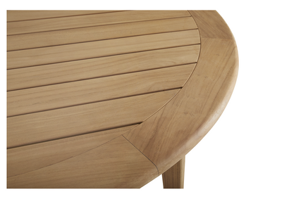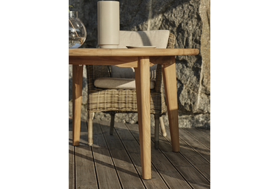 Bordet er laget i teak – et slitesterkt og naturlig oljerikt tremateriale som tåler vær og vind svært godt. Den gjennomførte konstruksjonen og de vinklede bordbena gir god stabilitet, samtidig som bordet beholder et lett og inviterende uttrykk. Lilja-serien er kjent for sin balanse mellom form og funksjon, og kan med fordel kombineres med matchende benk eller stoler i samme stil for en harmonisk helhet.