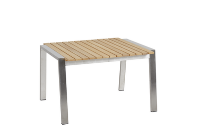 Naos sidebord kombinerer rustfritt stål og teak i et moderne design som passer perfekt til uteplassen. Med målene 60 x 60 cm og en høyde på 40 cm, tilbyr det en praktisk overflate for servering eller dekorasjon. Materialene er nøye utvalgt for å tåle nordiske værforhold, og teakens naturlige aldring gir bordet karakter over tid.