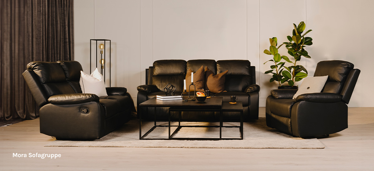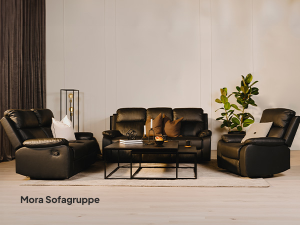 Sjekk ut Mora Sofagruppe, med en kombinasjonen av komfort, funksjonalitet og stil. Denne sofagruppen, bestående av en 3-seter, 2-seter og 1-seter, er designet for å gi maksimal avslapning med sin praktiske recliner-funksjon. Enten du ønsker å slappe av med en god bok eller nyte favorittprogrammene dine på TV, tilbyr Mora Sofagruppe den perfekte hvileplassen.