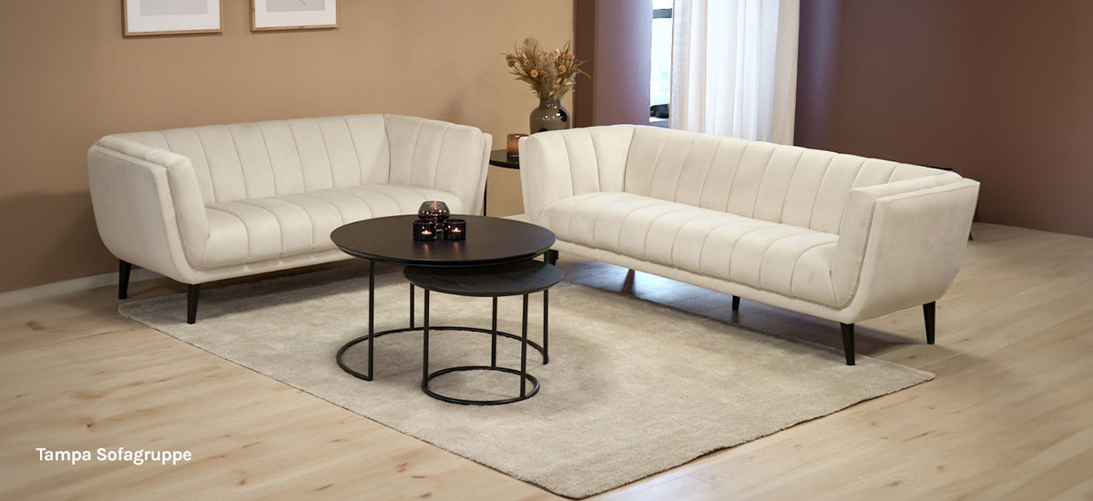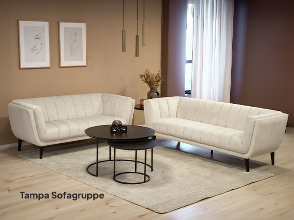 Tampa Sofa er en moderne tolkning av retro design. Med karakteristiske og dekorative sømmer, gir den rommet en unik følelse. Sofaen er en kombinasjon av stilig design og praktisk komfort, noe som gjør den til et perfekt møbel for både moderne og klassiske hjem.